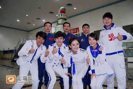對于很多中國人來說,北京航天城的航天員訓練中心是一個神圣又神秘的地方。說它神圣,是因為讓我們倍感驕傲的神六、神七宇航員們都是從這里走向太空的;而說它神秘,自然是因為這個凝聚了我國航天事業(yè)者們心血與結(jié)晶的地方并不是每個人都有機會進到的。導演組經(jīng)過多方的努力,終于爭取到了此次拍攝機會。拍攝當天,“快樂家族”的五位主持人還見到了翟志剛、景海鵬和劉伯明三位神七宇航員,親眼看到心目中的民族英雄,大家紛紛激動不已,一個勁地和他們握手、合影。