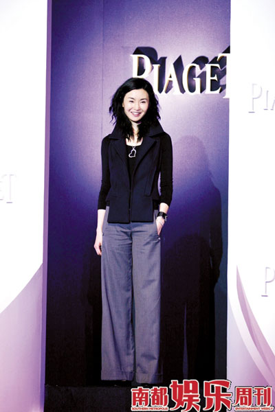 張曼玉以形象大使的身份出席某珠寶品牌活動,黑色修身上衣搭配煙灰色寬松長褲子, 簡潔卻富設(shè)計感,搭配伯爵的新款珠寶,明麗動人。
