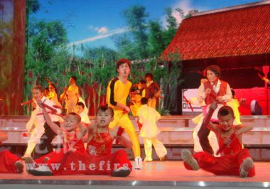 很多大腕在春晚第4場彩排前人仰馬翻地敗下陣來,卻有一群不知名的孩子被增加戲份,他們就是曾在去年奧運會開閉幕式上挑過大梁的河南少林塔溝武校的孩子們。這次他們不僅和飾演李小龍的陳國坤合演武術(shù)喜劇《功夫世家》,還臨時被春晚導演組借調(diào)到開場歌舞里撐臺面兒!豆Ψ蚴兰摇返男⊙輪T最小的6歲,即使陳國坤拿雙截棍亮相,用拳和腿分別擊開兩塊木板,也不如這十幾個會功夫的小娃娃奪目。據(jù)說這支隊伍在去年奧運會開閉幕式和殘奧會開閉幕式上共表演了5個節(jié)目:《自然》和《夢想》、《彈跳龍》等。記者 郭慕華
