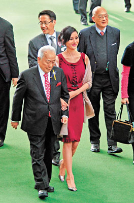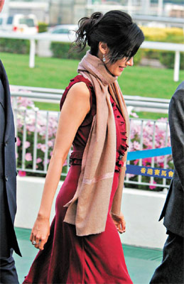 中新網(wǎng)2月2日電 許家新抱李嘉欣踏入牛年終于現(xiàn)身,昨日初七“人日”她以一身紅裙示人,盛傳懷孕的她明顯肚凸凸,與丈夫許晉亨及公公婆婆到沙田馬場觀戰(zhàn),結(jié)果許家名下兩匹愛駒跑第一,一日連拉兩次頭馬,可見嘉欣風(fēng)頭勁旺。許家喜事重重,難怪一向表現(xiàn)低調(diào)的許老太也罕有地眉開眼笑。