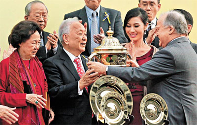 此外,身為亨亨前岳父的賭王何鴻燊,昨日巧合地現(xiàn)身馬場(chǎng),與嘉欣撞到。問賭王是否覺得嘉欣肚凸似有喜?他風(fēng)趣地說:“不知道是不是(有孕)嘍!我不會(huì)望女仔的肚子!