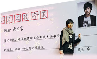 陳楚生再次在自己的博客上發(fā)表文章,希望媒體不要打擾自己的家人,而發(fā)生在自己身上的解約事件,他愿意坦然地去面對應該承擔的責任。而他所說“責任”的另一方——東家天娛公司卻罕見地在陳楚生公開表示沖喜的那天(1月15日)起保持著不做任何回應的低調(diào)態(tài)度。(詳情請見本報1月21日報道)。陳楚生是從天娛主辦的“快男”舞臺上迅速鑄就的傳奇,但同時也遭遇到整個選秀體制客觀存在的缺陷帶來的窘迫。日前,天娛總經(jīng)理龍丹妮接受本報記者獨家專訪,坦率地回應了外界對天娛的種種猜測與斷定,而作為新官的她將燒起三把火:開拍新版《流星花園》、春夏期間舉辦超女,而最終要做的就是“引火燒身”,從體制上改革天娛。