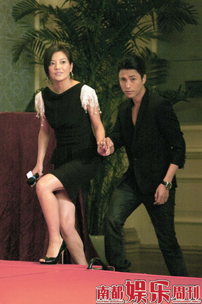 而陳坤也不讓搶鏡的趙薇專美于前,他豪氣派發(fā)數(shù)十封紅包給現(xiàn)場記者當(dāng)作年后開工的開門利是,令到現(xiàn)場一片歡騰。由于開機(jī)當(dāng)天正臨近情人節(jié),記者紛紛要求趙薇和陳坤這對銀幕情侶攜手?jǐn)[拍幾張親密愛人的pose,二人也十分配合,發(fā)布會(huì)上也很是投入地“演出”情侶間的拌嘴畫面,陳坤先爆自己不喜歡趙薇這一類型的,因?yàn)椤八腥藲饬恕,趙薇則回嘴自己“其實(shí)一直很有女人味,都是被陳坤亂造謠把名聲搞壞了!庇杏浾哐垡娙绱藲夥,便趁熱打鐵地詢問兩人是否有發(fā)展可能,沒料到氣氛一下子降至冰點(diǎn),向來感情生活神秘的陳坤臉色突變,干脆別過頭去,不予回答,最后還是趙薇化解了尷尬場面,她有些嚴(yán)肅地說:“我倆各自都挺多人追的,就還是別在一起給其他人一些機(jī)會(huì)吧!