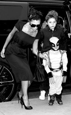 為了慶?唆斊澋乃臍q生日,貝嫂特意花重金在環(huán)球總公司為兒子慶祝,還特意請(qǐng)來(lái)自己的好友及幾位小朋友給兒子“祝壽”,而派對(duì)要求所有小朋友都要以Cosplay的造型出現(xiàn)?唆斊澑且陨碜鲃t扮起擁有金剛狼般爪子的超人,過(guò)了一會(huì)又換裝化身蜘蛛俠,而哥哥羅密歐則以變形金剛的造型出現(xiàn)。一同前往的還有妮可·里奇和伊娃·朗格利亞等明星,他們帶來(lái)的小公主們也化身女超人和女蝙蝠俠出現(xiàn)在派對(duì)上。