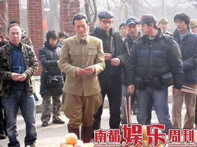 高群書的電影處女作《東京審判》曾獲得了廣泛的好評,而在此之前他曾拍攝了大量的刑偵劇,其中最成功最有名的就是孫紅雷主演的《征服》。記者從劇組的拍攝通告上發(fā)現(xiàn)正月十六這一天拍攝的是王志文審訊女刺客的戲,而扮演女刺客的是《征服》的女主演劉威葳,去年劉威葳曾主演了王小帥的影片《左右》。兩年多前《征服》火爆熒屏的時候,就有圈內(nèi)人士告訴記者,劉威葳就是導演高群書的女友,兩人已相戀多年,早在高群書的那部主要由非職業(yè)人員出演的系列劇《命案十三宗》中劉威葳就出演過其中的一集。記者在片場看到劉威葳梳著三十年代流行的女性的“雞窩”發(fā)型,穿著一件破爛的染著“血跡”的裙子,據(jù)一位知情人士向記者透露,劉威葳扮演的女刺客雖然戲份不多,但很重要,影片的一開場就是她刺殺日本要員的重頭戲,因為她負傷被俘,才意外使日軍懷疑內(nèi)部有間諜,從而展開調(diào)查。