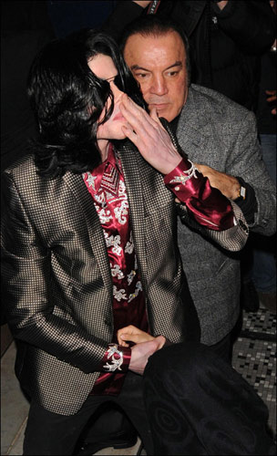 宣布要回歸歌壇,進(jìn)行最后的演唱的天王邁克爾·杰克遜,3月7日帶著自己的兒子一起現(xiàn)身英國(guó)倫敦的 Royal Theatre 觀看音樂劇,引發(fā)了歌迷們的追蹤狂潮,邁克爾·杰克遜也不愧為見過大場(chǎng)面的人物,不時(shí)的向歌迷揮手并拋去飛吻。