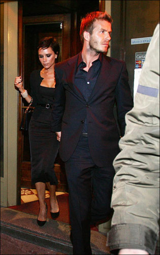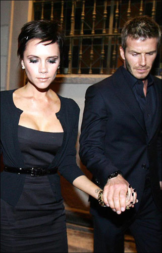 高出鏡率夫妻貝克漢姆和維多利亞·貝克漢姆昨日(3月9日)二人手牽手浪漫外出就餐。當(dāng)二人發(fā)現(xiàn)有狗仔隊跟拍時,顯然很高興。當(dāng)晚小貝身穿黑色休閑西裝,酷感十足,十分的帥氣。貝嫂則脫去了自己雷人的軍官服和貴婦至極的皮草大衣,換上了莊重得體的黑色白領(lǐng)服裝,低胸設(shè)計相當(dāng)性感,看來有小貝在身邊的貝嫂還算不錯。