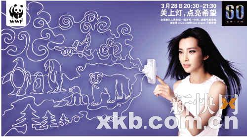 內(nèi)地女星李冰冰近兩年除了成為國際一線品牌青睞的對象外,由于其形象健康,也受到環(huán)保組織的注意。日前,由世界自然基金會(簡稱wwf)發(fā)起的 “EarthHour”活動,就看中了李冰冰的國際號召力,將她從《風聲》的劇組里“借”了出來,于3月28日在北京鳥巢發(fā)起“熄燈一小時”活動。該活動一向具有廣泛的國際影響力,在澳大利亞更請到了好萊塢巨星妮可·基德曼擔任推廣大使。據(jù)悉在活動當晚,妮可·基德曼和李冰冰將分別出現(xiàn)在悉尼歌劇院和鳥巢中,并有機會用遠程通話的方式響應此次活動。