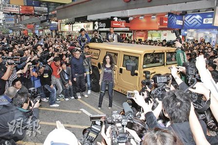 據(jù)香港《明報(bào)》報(bào)道,阿嬌昨日以Bauhaus旗下的TOUGH Jeansmith亞太區(qū)代言人身分,現(xiàn)身旺角西洋菜街做宣傳。這次是阿嬌自艷照事件后首次面對(duì)群眾,大會(huì)聘請(qǐng)10多位保安維持秩序,警方亦加強(qiáng)軍裝警察協(xié)助,便衣探員亦在高處攝錄戒備,活動(dòng)中除有半百fans帶齊橫額和敲銅鑼支持,亦吸引過(guò)千市民圍觀,場(chǎng)面熱鬧。