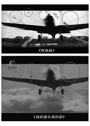 《團(tuán)長(zhǎng)》前兩集中描繪孟煩了、迷龍等川軍團(tuán)成員乘坐運(yùn)輸機(jī)前往緬甸時(shí),遭遇日軍襲擊而墜機(jī)的情節(jié),首日播出之后,便有眼尖的觀眾發(fā)現(xiàn)空中飛行的鏡頭和墜機(jī)的鏡頭和《珍珠港》相似。昨日,有觀眾貼出了全部的比較圖,其中十余幀畫面和《珍珠港》如出一轍,甚至連駕駛艙的構(gòu)造和艙內(nèi)細(xì)節(jié)都是一模一樣。觀眾紛紛質(zhì)疑《團(tuán)長(zhǎng)》從電影中直接截取了相關(guān)鏡頭。