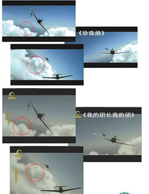 《團(tuán)長(zhǎng)》的一個(gè)飛機(jī)爆炸畫(huà)面,大量細(xì)節(jié)與《珍珠港》類(lèi)似,只是爆炸地點(diǎn)從地面附近變換到云層中。