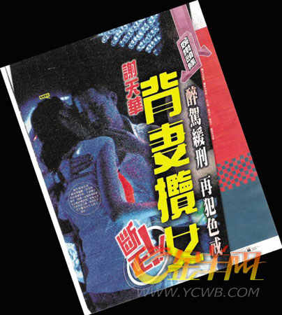 3月11日,因醉酒駕駛謝天華出庭接受判決,最后法官裁定罪名成立,判監(jiān)六星期,緩刑一年,停牌18個月。判刑前,謝天華曾帶著太太Tina去廟里求神庇祐,判刑日又與太太十指緊扣上庭。不過,據(jù)昨日出版的香港某雜志報道,獲得賢內(nèi)助無限支持的謝天華表面上擺出好男人的模樣,夜晚則背著妻子去夜店泡女孩子。