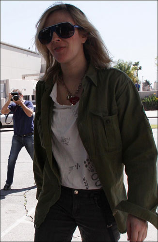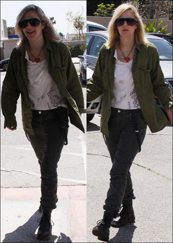 3月24日,打扮越來越有自己風(fēng)格的德魯·巴里摩爾來到美國(guó)加州好萊塢的一個(gè)工作室,身穿軍綠色上衣、黑色長(zhǎng)褲配軍裝靴的她顯得帥氣而隨性。