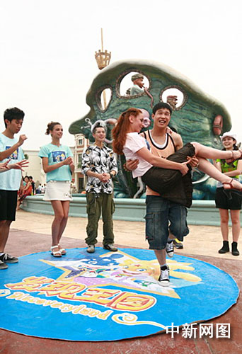 據(jù)該公園負責人介紹,這組照片是去年7月,主題公園2周年之際,特聘《鄉(xiāng)村愛情2》劇組拍攝4集以家庭和情侶為題材的《歡樂集結(jié)號》,目的是為倡導 “發(fā)現(xiàn)親情、發(fā)現(xiàn)友情、發(fā)現(xiàn)愛情——發(fā)現(xiàn)快樂、發(fā)現(xiàn)王國”的公園主題。