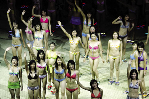 由張藝謀、王潮歌和樊躍“鐵三角”共同執(zhí)導(dǎo)的大型實(shí)景演出———《印象·海南島》,昨晚在?谑杏∠髣(chǎng)首次公演。這是自《印象·劉三姐》、《印象·麗江》“雪山篇”和《印象·西湖》之后的第四個(gè)印象系列作品,也是張藝謀繼北京奧運(yùn)會(huì)和殘奧會(huì)之后推出的首部作品。因?yàn)檠莩鲋杏猩习倜琅展庠〉膱?chǎng)景,有人戲稱(chēng):“這是張藝謀在為之前出了‘海灘曬肉’事件的章子怡辯護(hù)!