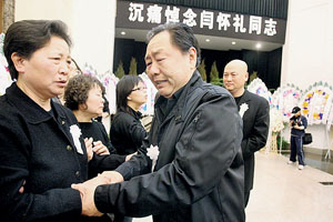 “有事給我打電話!薄疤粕边t重瑞強(qiáng)忍悲痛,對著閆懷禮遺孀馮女士,做了個打電話的手勢。