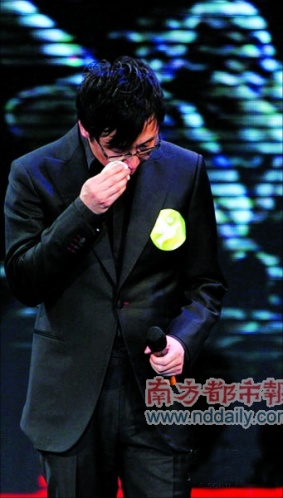 然后感人的一幕隨即出現(xiàn)了。陸川父親導(dǎo)演陸天明的影像突然出現(xiàn)在大屏幕上。原來他和陸川母親由于工作不能前來現(xiàn)場,但是特別錄制了一段視頻。在視頻中,這位同為導(dǎo)演的父親談及兒子這幾年碰到的困難,受到的委屈,幾度哽咽無法說話。屏幕這邊的陸川當(dāng)場低頭哭泣數(shù)分鐘,主持人在旁不斷安慰才得以緩解情緒重新接受采訪。最后,所有到場主創(chuàng)和投資方中影董事長韓三平、星美傳媒董事長覃宏一起為全球首映倒數(shù)計時,揭開這部斥資八千萬、四年磨一劍的電影上映的序幕。