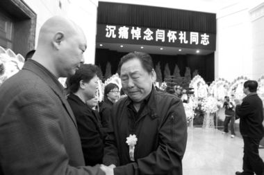 上午9時(shí)40分,遲重瑞、六小齡童和馬德華攜花圈來(lái)到現(xiàn)場(chǎng)。聚集在廣場(chǎng)上的影迷和記者立即將3人團(tuán)團(tuán)圍住!八研蕹山鹕砹_漢,并將永遠(yuǎn)留在喜愛(ài)他的觀眾心里!绷↓g童激動(dòng)地說(shuō)。六小齡童表示,閆懷禮在天堂和他們心同在,他們是生死之交。同時(shí)他和馬德華也透露,電視劇《吳承恩與西游記》將在今年暑期播出,這也是閆懷禮生前最關(guān)注的一件事。此外,《西游記》中的幾個(gè)好兄弟也一直在策劃《西游記》主題公園和電影《大鬧天宮》,他們將盡快落實(shí),以告慰閆懷禮的在天之靈。