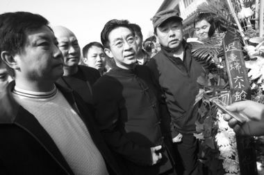 上午10點(diǎn)告別儀式開(kāi)始,人們排成長(zhǎng)隊(duì)井然有序地進(jìn)入靈堂。閆懷禮的遺體安臥在花叢中,面容安詳!吧窕觌x去芳名百世著清風(fēng),音容宛在勤奮一生傳佳話(huà)”的挽聯(lián)十分醒目。靈柩旁,六小齡童、遲重瑞、馬德華等《西游記》主創(chuàng)垂淚站立。當(dāng)《西游記》主題曲《敢問(wèn)路在何方》在靈堂響起,眾人嗚咽聲一片。