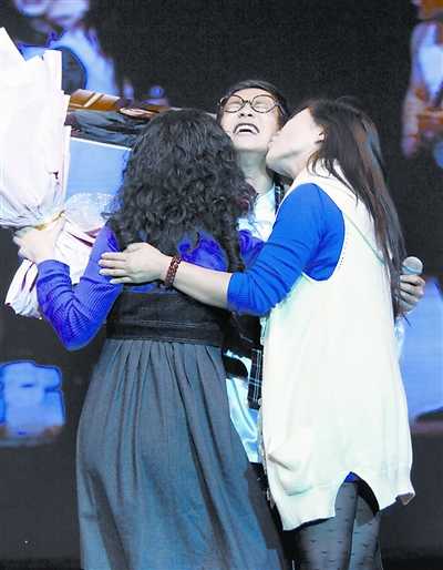 小沈陽人氣非常之高,現(xiàn)場上座率達到9成,連兩側看不到舞臺的地方都坐滿了人。主辦方透露,小沈陽的票出了8成之多,這在以往實屬罕見。大部分的觀眾都沖著小沈陽而來,前面1個半小時的表演里,大家雖然笑是笑,但是只有小沈陽走到舞臺上時,全場氣氛才為之沸騰。有粉絲上臺去獻花、強吻小沈陽,這可都是別的演員享受不到的待遇哦!老實說,小沈陽表演的確很賣力,不管是吼《死了都要愛》還是唱《大!飞踔潦潜硌荨睹餍桥c粉絲》的段落,但是在側面觀看小沈陽的表情時,記者幾次都發(fā)現(xiàn)他在拼命的眨眼睛,似乎要趕走隨時而來的睡意。