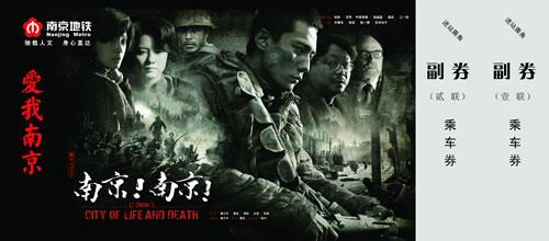 據(jù)了解,該電影主題地鐵紀念票由南京地鐵運營分公司日前與中影集團合作發(fā)行,正面采用《南京!南京!》電影的主題海報,并有兩聯(lián)副券用于乘坐地鐵。此次南京地鐵運營分公司與中影集團通過資源置換的方式進行的聯(lián)合,開創(chuàng)了南京地鐵運營分公司票卡發(fā)行的新模式。