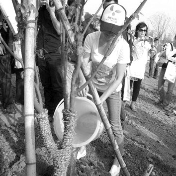 5月5日,世博會“綠色出行大使”周迅與世博局領(lǐng)導(dǎo)、媒體朋友赴上海辰山植物園,一同種下了世博綠色出行林。同時,她還出資捐贈了233棵樹,成為世博林首個捐贈者。