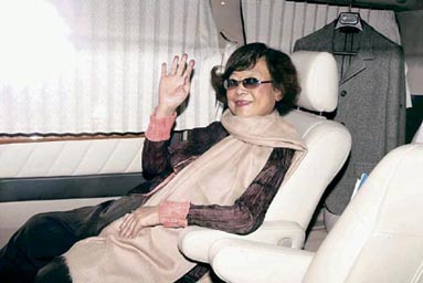中新網(wǎng)10月19日電 “肥姐”沈殿霞前日出院返家休養(yǎng),愛熱鬧的她昨午出動與好友聚會,為免被傳媒追訪,她改乘陳淑芬的座駕,并拉上窗簾掩人耳目,直至晚上8時才回家,心情不錯的她拉開窗簾讓記者拍照。化了妝的肥姐精神甚佳,還笑著向鏡頭揮手。