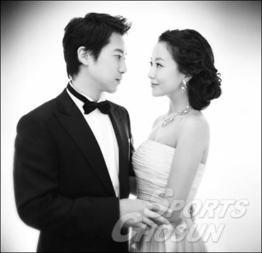 去年,金喜善經(jīng)熟人介紹在一次聚會上和樸周永相識后,兩人經(jīng)過1年多的甜蜜戀愛,終于修成正果。