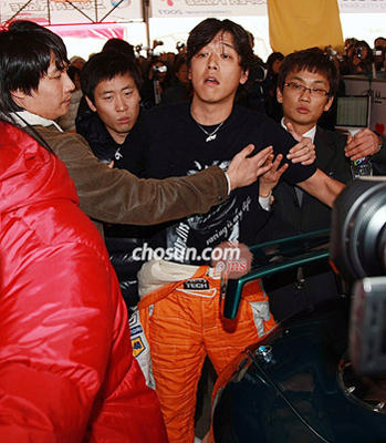 中新網(wǎng)11月12日電 據(jù)朝鮮日報報道,11日在龍仁愛寶樂園SPEEDWAY舉行的“CJ超級賽”第7輪比賽上,參加TOURING A項目預(yù)選賽的R-STARS隊的柳時元,比賽結(jié)束后,因為在比賽中的事故而與NRT選手孫炳勛發(fā)生口角。