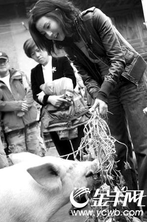 日前,張曼玉到云南省會澤縣參加“童夢圓”活動,在農(nóng)戶家喂過一頭豬。后來有網(wǎng)友惡搞說當?shù)乜h委書記最近發(fā)出指示說,要切實保護張曼玉喂過的豬,在網(wǎng)上掀起劇烈評論。對此,會澤縣有關(guān)部門稱,網(wǎng)上傳言純粹是胡編亂造,而張曼玉喂過的豬將在年底被宰。