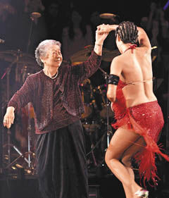 另一波驚喜出現(xiàn)在他唱《迷迭香》時(shí),舞蹈老師阿宏突然請坐在臺下的周董外婆上臺,原來外婆是國標(biāo)舞高手,80多歲寶刀未老,在杰倫的帶動下,與女舞者即席表演了一段,技驚四座,香港傳媒以“令觀眾拍爛手掌”形容現(xiàn)場的熱烈。