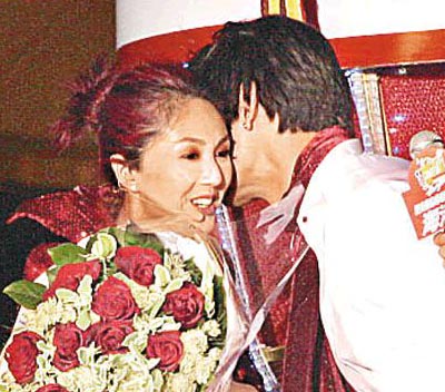 中新網(wǎng)12月26日電 據(jù)香港太陽報報道,楊千嬅、何韻詩與許志安等,前晚(12月24日)在尖沙咀廣東道舉行倒數(shù)派對,吸引逾萬市民圍觀!壓軸演出的千嬅,以一身紅彤彤的打扮搶鏡,大會安排一名高大俊男給她作“禮物”,令她興奮得哇哇大叫,還說:“Very Happy!(很開心。痹撁∧兴蜕硝r花及獻吻,但當?shù)孟Ψ揭延屑沂,?#23301;即拒絕“愛意”。談及新年愿望,她暗示希望找到新戀情:“想找一件跟我般配的衣服!”