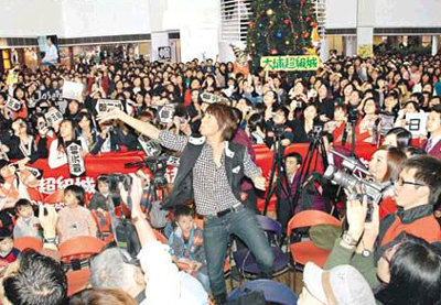 昨午在新港城中心舉行簽唱會(huì)的Danson大耍迷人功,當(dāng)Fans大膽贊他的臀部夠翹,他即說:“你碰過還是你看過?上次在機(jī)場摸我那個(gè)人是不是你?”他又細(xì)心安慰在臺(tái)邊感動(dòng)流淚的Fans。收到Fans送上豬仔儲(chǔ)錢罐時(shí),他還笑問Fans是不是當(dāng)他是豬,F(xiàn)ans說:“我當(dāng)你是寶貝豬呀!”對(duì)于熱情的Fans,Danson大為感動(dòng),謙虛地表示視羅志祥和小綜為前輩,不會(huì)比較簽唱會(huì)成績。