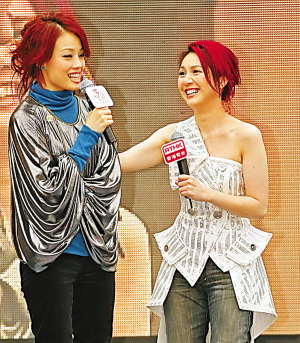 容祖兒(左)與楊千嬅(右)繼上周六晚在《勁歌》斗得你死我活后,前日再在“金曲頒獎(jiǎng)禮”中比拼。另外楊千嬅與陳奕迅活動(dòng)中一度齊齊跌倒。