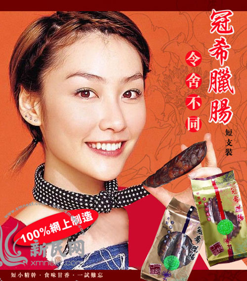 在香港某論壇有網(wǎng)友PS了兩張賀年食品的廣告圖,廣告上的主角分別為“艷照門”事件中涉及的藝人陳冠希和陳文媛。其中一則廣告上竟稱該賀年食品為“送禮極品”。