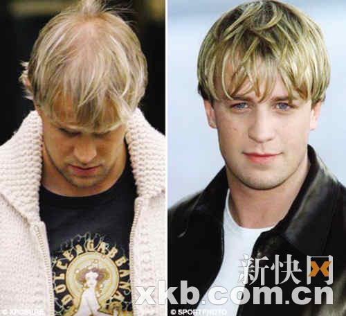 多年前,“西城男孩”一舉成名一部分原因是他們“漂亮”的外表,但現(xiàn)在,成員KianEgan 的這張俊俏的臉?biāo)坪踉谧兝。上?9日,這位27歲的歌手出現(xiàn)在倫敦多爾切斯特旅館時(shí),有記者拍到他中年男人典型的禿頂。