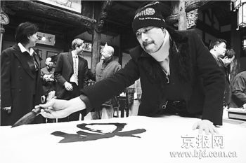 昨天,墨海飄香——群星迎春筆會在坦博藝苑舉辦,多位影視明星、書畫界元老共同參與,揮筆潑墨,其中包括著名歌唱家胡松華、李雙江、戴玉強等。值得一提的是,很少參加內(nèi)地書畫活動的香港藝人也來到現(xiàn)場,香港影視明星徐錦江揮毫潑墨,給媒體留下深刻印象。原來,這位演過“魯智深”、“鰲拜”的港星,并不是一位粗人,徐錦江畢業(yè)于廣州美術(shù)學(xué)院,是中國南派著名畫家關(guān)山月的弟子。在香港演藝圈,外表豪放的徐錦江書畫藝術(shù)水平,無人能出其右。