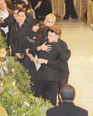 此外,無(wú)線小生吳卓羲(Ron)亦有到場(chǎng)悼念肥姐,并上臺(tái)向肥姐獻(xiàn)花致敬,又與欣宜握手以示安慰。雖然Ron與欣宜在2005年“兒歌金曲頒獎(jiǎng)禮”獻(xiàn)吻事件后首度碰面,不過(guò)二人表現(xiàn)毫無(wú)芥蒂,期間Ron更呼吁欣宜要堅(jiān)強(qiáng),而欣宜亦點(diǎn)頭微笑表示:“Thank you!”事后,問(wèn)Ron與欣宜碰面可有尷尬?他搖頭表示不感尷尬:“今次 主要是送別肥姐,雖然未有同肥姐正式合作過(guò),不過(guò)亦好尊敬對(duì)方,最后一次見肥姐是在臺(tái)慶頒獎(jiǎng)禮,見到她瘦了好多都好心痛。(今日見到欣宜覺(jué)得怎么樣?)成熟 好多,覺(jué)得她表現(xiàn)好堅(jiān)強(qiáng),不會(huì)令大家擔(dān)心,真是個(gè)大女孩了!