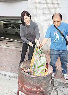 曾勵珍燒紙扎用品給肥姐。香港東方日報圖。