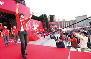 前日傍晚,由香港知名音樂人林夕和雷頌德共同為奧運贊助商創(chuàng)作的歌曲《紅遍全球》在奧運圣火點燃之際發(fā)布。在韓國著名組合Super Junior成員韓庚領(lǐng)頭下,18名來自全國各地的奧運火炬手與前奧運冠軍高敏等一起現(xiàn)場演繹了這首歌。作為目前韓國最當紅的組合Super Junior(以下簡稱SJ)里面唯一一個中國成員,韓庚在中國的人氣銳不可擋,對于這次有幸擔任1號火炬手,他前晚接受本報獨家專訪時表示感到很開心,一定要看奧運的開幕式,并且他透露今年會將大部分時間放在中國,而且SJ也會分組一隊專門針對中國市場的組合,并計劃推出中文專輯。