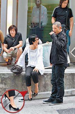 中新網4月15日電 剛返港為娘家無線拍攝新劇《學警狙擊》的周海媚,前日與謝天華在街邊拍攝一場遭追殺的戲分,F(xiàn)場見到,周海媚不時于路旁坐下休息,其小腿亦見浮腫,未知是否仍未能適應密集的通告令身體失調而水腫。
