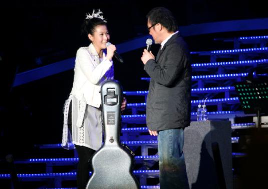終于,這番朝思暮盼總算在成都演唱會(huì)上有了美麗結(jié)局。當(dāng)奶茶在臺(tái)上一眼看到李宗盛優(yōu)雅的拖著吉他箱上臺(tái)助陣時(shí),驚喜得說(shuō)不出話。大哥逗趣笑說(shuō):“奶茶之前放過(guò)話,說(shuō)我如果不給她吉他,接著每一場(chǎng)演出我都得來(lái)當(dāng)她的嘉賓。所以呢,我今天可不可以先給妳吉他箱子,等下一場(chǎng)時(shí)再給妳吉他,因?yàn)槲覍?shí)在太想到妳的場(chǎng)子上唱歌了!”