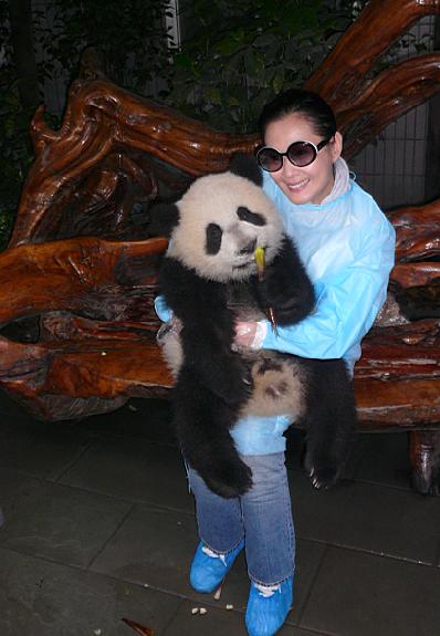 劉若英忙里偷閑抱熊貓 受寵若驚偷摸熊貓大腿