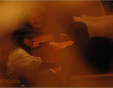 羅伯·明可夫朝靠窗處走去,此時,回頭的李冰冰剛好讓記者看了個仔細(xì)。簡單的寒暄過后,羅伯·明可夫靠窗位置坐下。為了更仔細(xì)的觀察到二人當(dāng)時的情況,記者轉(zhuǎn)身上到二層找尋最佳位置取證拍照,在鏡頭中,起初李冰冰與旁邊的助理不時拿出一些照片和資料給羅伯·明可夫看,李冰冰還不時用手指著一些照片在解釋什么,雖然羅伯·明可夫似乎沒有太多肢體上的語言,但從李冰冰手舞足蹈的表現(xiàn)中,可以看出二人交流的很愉快(看來李冰冰的英語練得不錯)。交談的過程中,羅伯·明可夫不時手托著下巴認(rèn)真聆聽,不時談笑風(fēng)生,在隨后的時間里,雙方似乎達(dá)成了某些事宜,李冰冰與助理很認(rèn)真的說著某事情,而羅伯·明可夫則坐在一旁開始玩弄手機(jī),偶爾加入到李冰冰與助理的談話中。