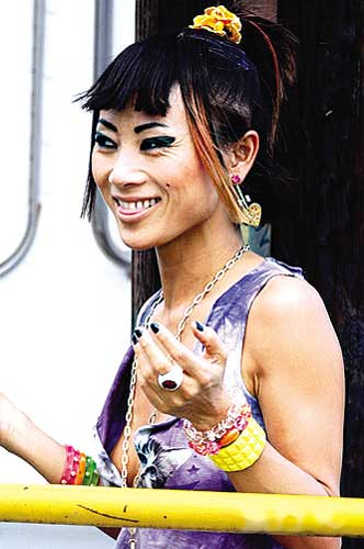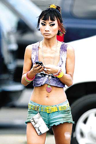 白靈真空亮相洛城街頭 怪異打扮引行人側目(圖)
