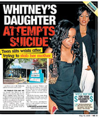 惠特尼·休斯頓女兒曾揮刀刺母 接受精神治療