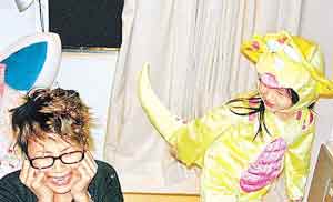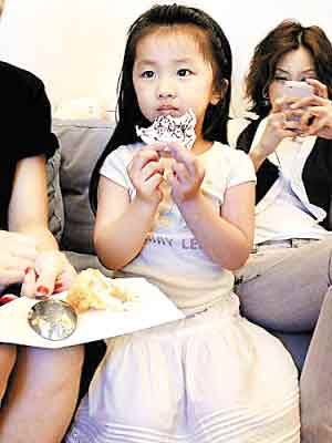 陳奕迅女兒扮恐龍為何韻詩慶生 淘氣像小猴(圖)