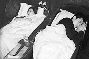 梁朝偉(偉仔)與劉嘉玲早前去戛納宣傳電影《東邪西毒:終極版》,二人5月23日返回香港時,在飛機(jī)上10多小時沒有交流,從曝光的照片看,沒化妝的嘉玲面向天單手壓胸,雙唇微微張開;而偉仔愛側(cè)睡,臉壓雙手,十足嬰兒。被問到兩人在飛機(jī)上各自埋頭大睡互不理睬時,偉仔對此笑稱:“睡覺時怎么交流呀?” 而專家根據(jù)兩人的睡姿分析,偉仔依賴性強(qiáng),嘉玲性格獨(dú)立。