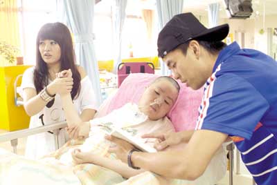 戴愛玲與柯有綸是為植物人進行復建的工作,并與已蘇醒的植物人進行互動。戴愛玲為他們按摩并與他們進行傳球游戲?掠芯]則是在一旁念《阿育王的故事》給他們聽,幫助他們思考。(記者唐雪薇)