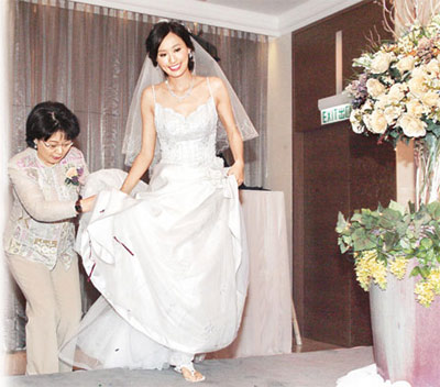 中新網(wǎng)5月29日電 據(jù)香港太陽報(bào)報(bào)道,陳法拉日前為新劇《溏心風(fēng)暴之家好月圓》拍攝一場(chǎng)結(jié)婚戲,身著純白婚紗的她,身姿優(yōu)美,高貴典雅。